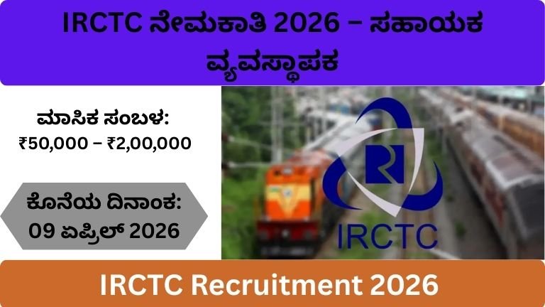 IRCTC ನೇಮಕಾತಿ 2026 ಉಪ ಜನರಲ್ ಮ್ಯಾನೇಜರ್ ಹುದ್ದೆಗಳು ರೈಲ್ವೆ ವಲಯದಲ್ಲಿ ಕೆಲಸ ಮಾಡಲು ಬಯಸುವ ಅಭ್ಯರ್ಥಿಗಳಿಗೆ ಇಲ್ಲಿದೆ ಒಂದು ಅತ್ಯುತ್ತಮ ಅವಕಾಶ. ಪ್ರಸಿದ್ಧ ರೈಲ್ವೆ ಕಂಪನಿ …