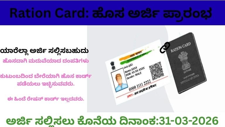 ಕರ್ನಾಟಕ ಹೊಸ ಪಡಿತರ ಚೀಟಿ ಅರ್ಜಿ (Ration Card) 2026 – ಸಂಪೂರ್ಣ ಮಾರ್ಗದರ್ಶಿ ಪಡಿತರ ಚೀಟಿ ಎಂದರೆ ಅಕ್ಕಿ ಅಥವಾ ಇತರ ಆಹಾರ ಧಾನ್ಯಗಳನ್ನು ಪಡೆಯಲು …