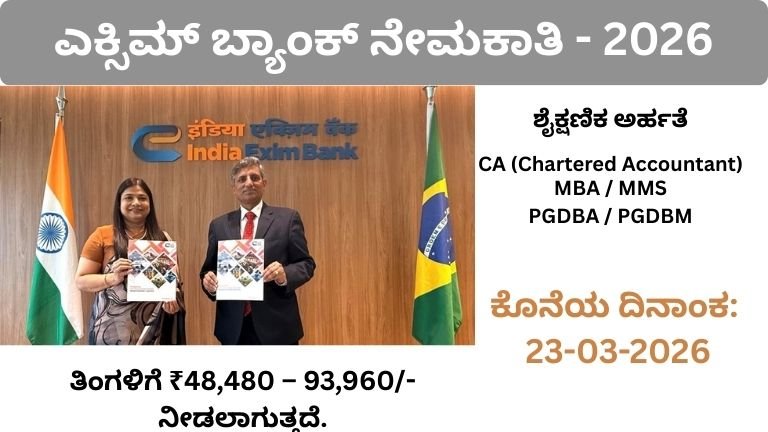 EXIM ಬ್ಯಾಂಕ್ ನೇಮಕಾತಿ 2026 – ಮ್ಯಾನೇಜರ್ ಮತ್ತು ಡೆಪ್ಯೂಟಿ ಮ್ಯಾನೇಜರ್ ಹುದ್ದೆಗಳ ವಿವರವಾದ ಮಾರ್ಗದರ್ಶಿ ನೀವು ಬ್ಯಾಂಕಿಂಗ್ ಕ್ಷೇತ್ರದಲ್ಲಿ ಪ್ರತಿಷ್ಠಿತ ವೃತ್ತಿಜೀವನವನ್ನು ಹುಡುಕುತ್ತಿದ್ದರೆ , ನಿಮಗಾಗಿ …