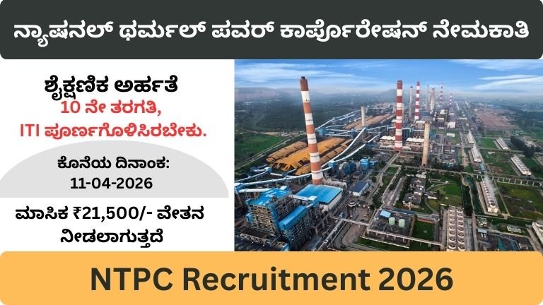 NTPC ನೇಮಕಾತಿ 2026 – ಕ್ರಾಫ್ಟ್ ಅಪ್ರೆಂಟಿಸ್ ಹುದ್ದೆಗಳ ವಿವರವಾದ ಮಾರ್ಗದರ್ಶಿ ನೀವು 10 ನೇ ತರಗತಿ ಅಥವಾ ಐಟಿಐ ಪೂರ್ಣಗೊಳಿಸಿ ಉತ್ತಮ ಉದ್ಯೋಗಾವಕಾಶವನ್ನು ಹುಡುಕುತ್ತಿದ್ದರೆ, ನಿಮಗಾಗಿ …